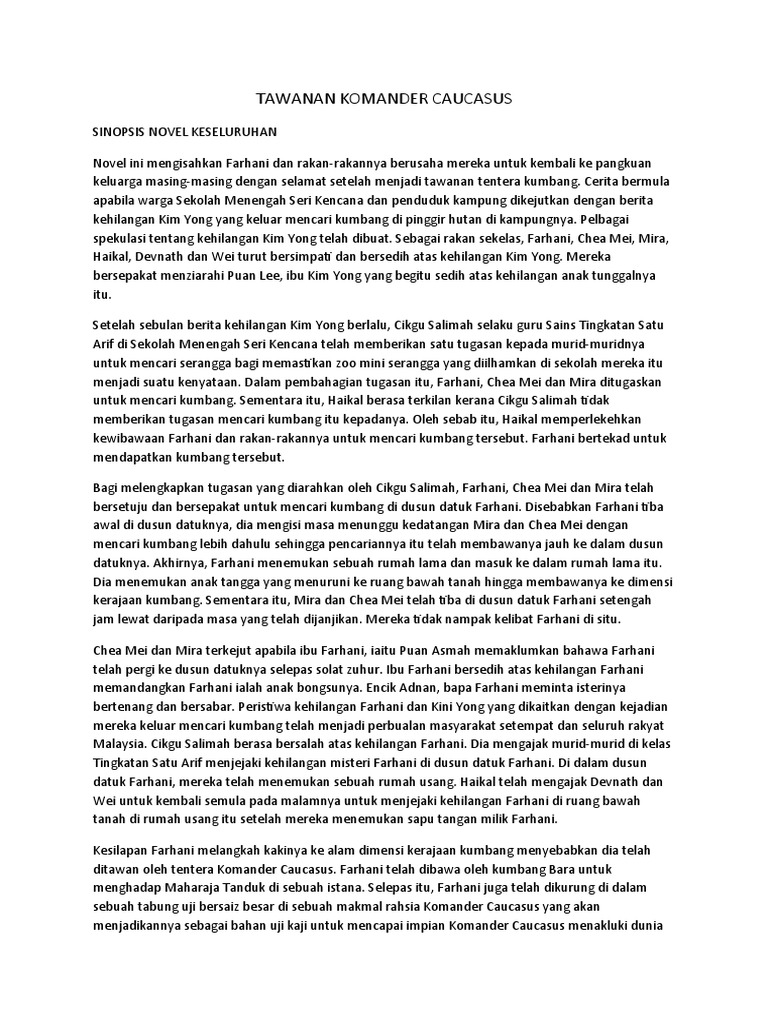 Tawanan komander caucasus karya ruzaini yahya sinopsis ialah ringkasan jalan cerita keseluruhan novel ini mengisahkan sekumpulan remaj. Read 8 reviews from the world's largest community for readers. Watak dan perwatakan novel tawanan komander caucasus. Lihat sinopsis, tema, latar masa, latar tempat, latar masyarakat, nilai, contoh soalan dan banyak lagi!. Novel tawanan komander caucasus (novel bahasa melayu tingkatan 3).